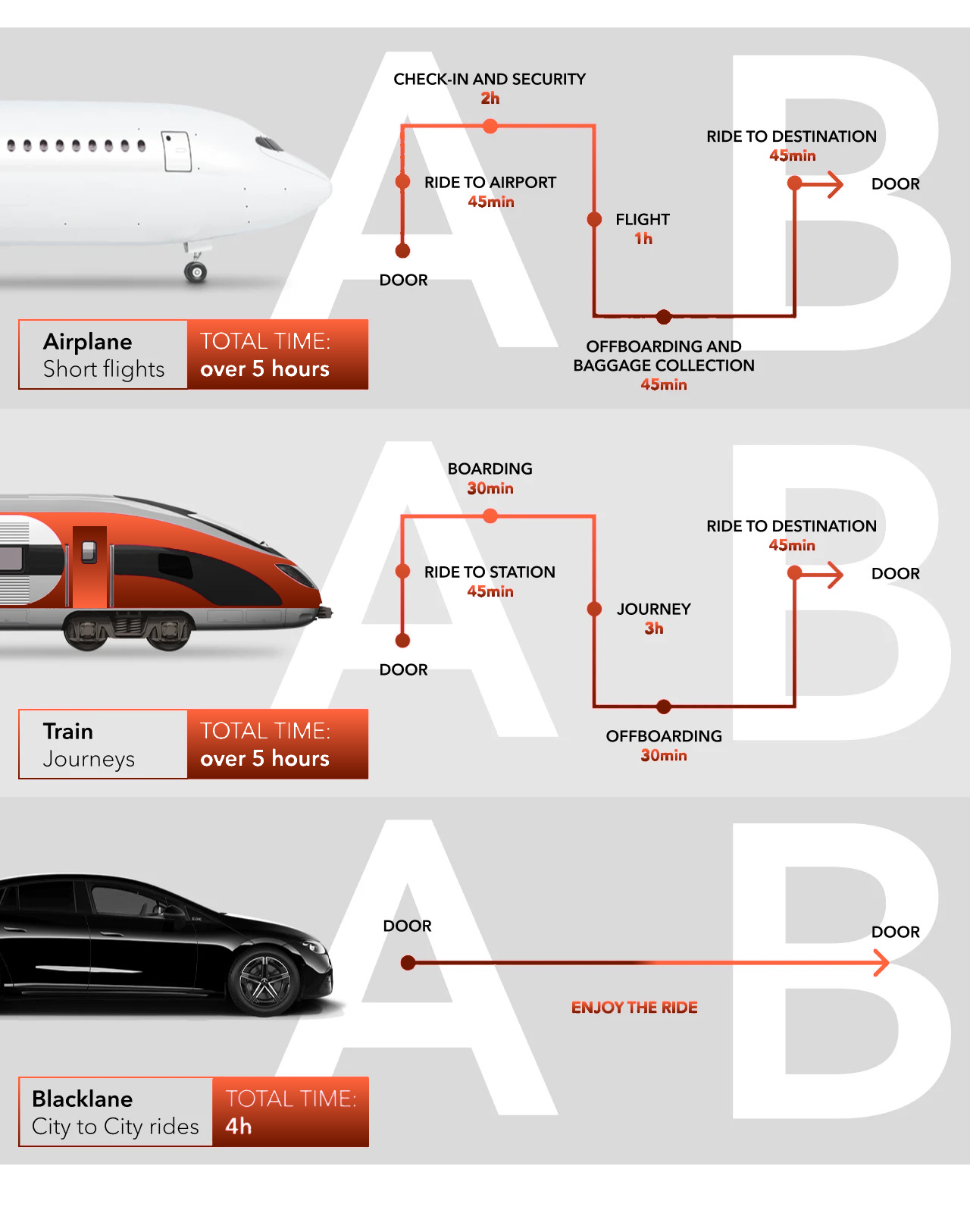 Say goodbye to the stress of short-haul flights, regional trains, or car rentals, and hello to the comfort and simplicity of chauffeured rides with our city-to-city private transportation service. Here are just a few of the reasons why our service is an excellent alternative to flying and other means of transport: